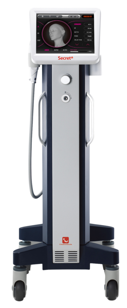 RF SECRET ist ein fraktioniertes Microneedling System (fraktionierte Radiofrequenz), welches die Möglichkeiten und Grenzen des fraktionierten Lasers deutlich überschreitet. Es ist ein System für umfangreiche Hautstrukturverbesserung und Behandlung von Hyperhidrose (Radiofrequenz-Thermotherapie RFTT), basierend sowohl auf monopolarer als auch auf fraktionierter, bipolarer Radiofrequenz.